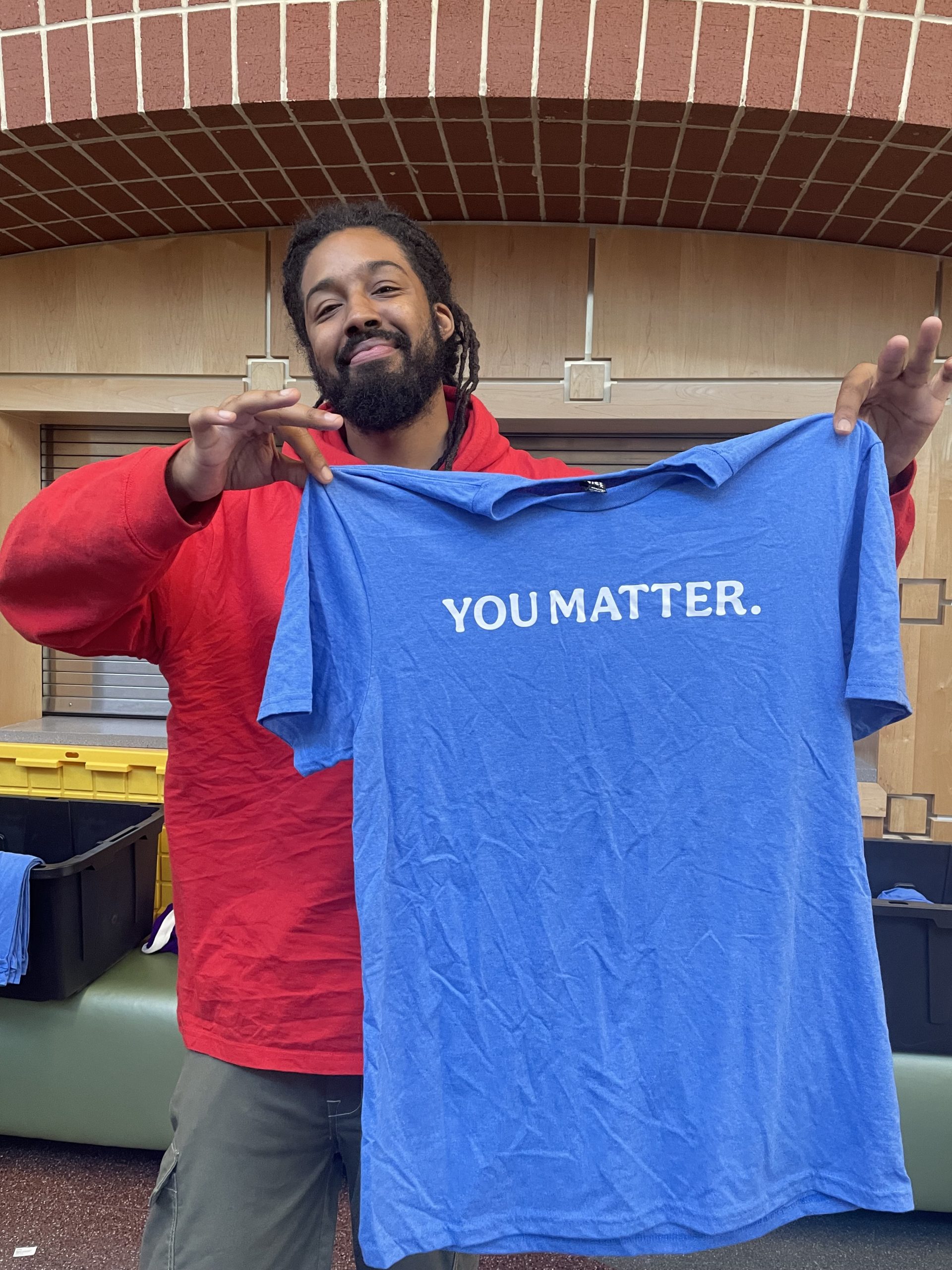 Donned in “You Matter” T-shirts, each read aloud a note on balled-up pieces of paper.
