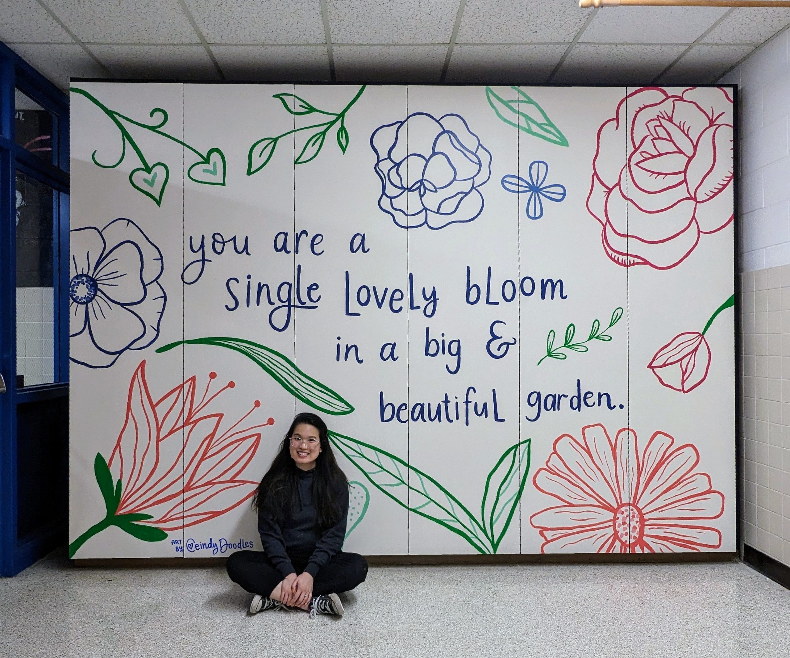 “When I think of being better together, I think of how each person brings something new and unique to the table,” said Ceindy Nunez, the artist behind the Rosemont Elementary mural. “I thought of my own son and how he brings his own individuality into his classroom. When I started to think of ways to express that, I imagined a beautiful garden and how each different plant brings something different to the overall space.”