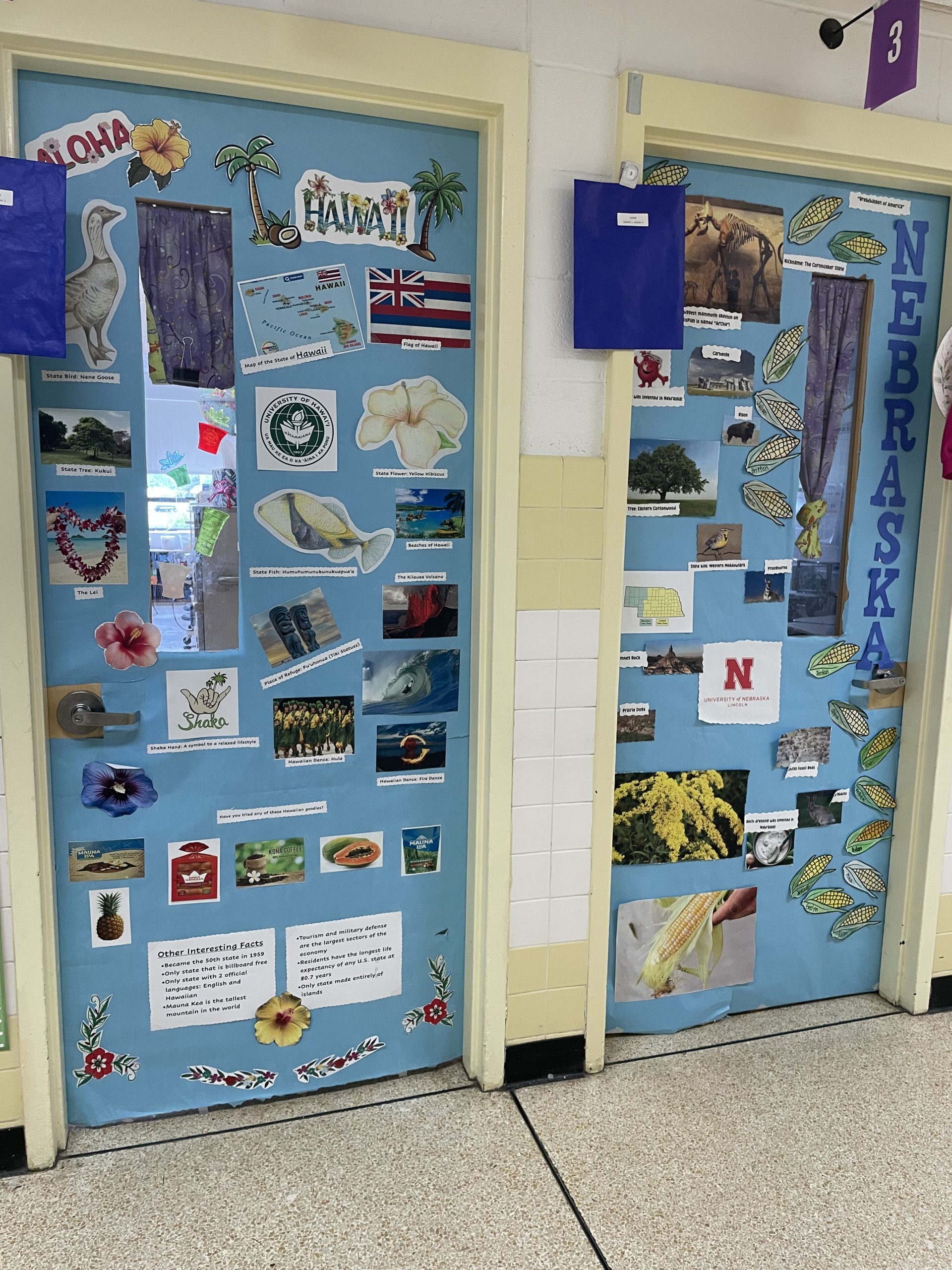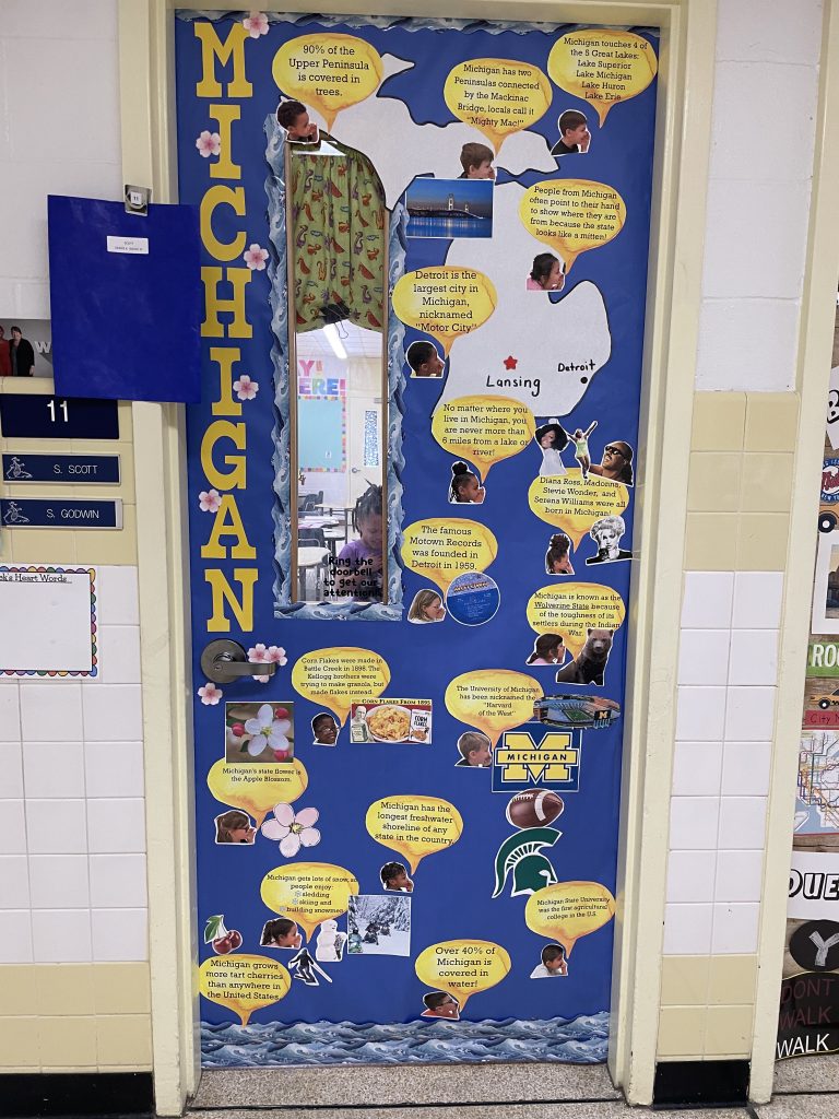 Teachers were asked to select a state and decorate their classroom doors with fun facts, including state birds, capitals, geography, careers and colleges, such as the University of Michigan, often called the “Harvard of the West.”