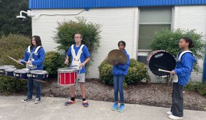 Members of Plaza Middle School drum line welcomed approximately 300 VBCPS female students as they walked inside the school Oct. 18 for Beach Girls Rock!