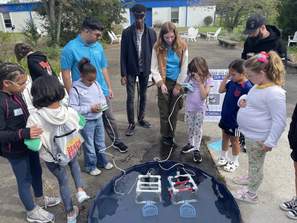 Following a presentation by the Deep Sea Tactics Team from Landstown High Governor’s STEM Academy, attendees headed outside to operate two underwater remotely operated vehicles (ROVs).