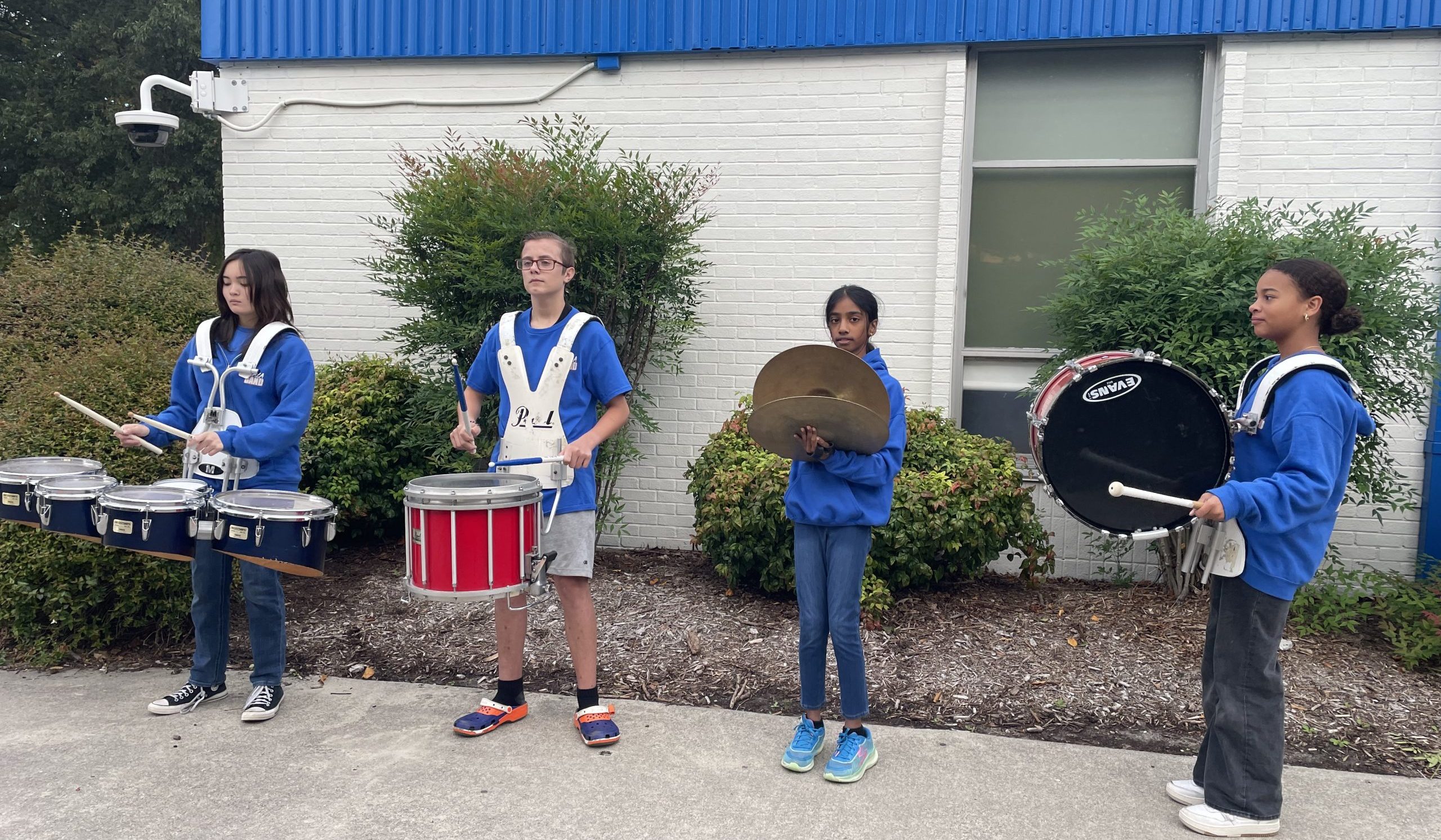 Members of Plaza Middle School drum line welcomed approximately 300 VBCPS female students as they walked inside the school Oct. 18 for Beach Girls Rock!
