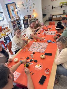 In September, the group made bracelets. In October, participants decorated pumpkins.