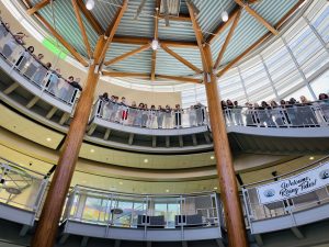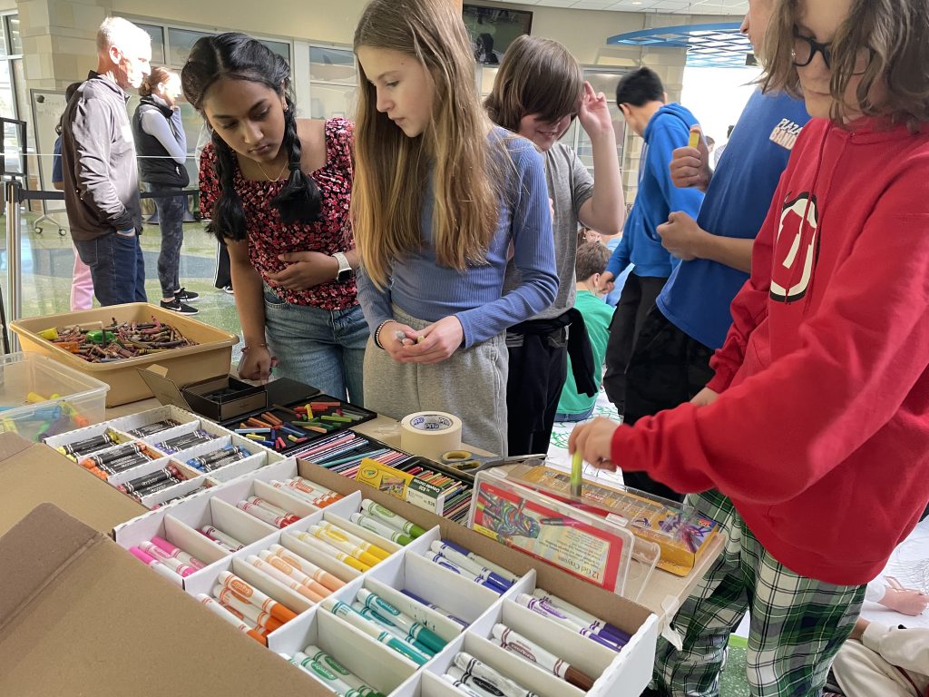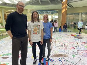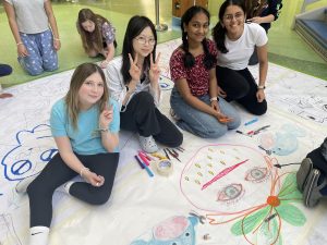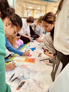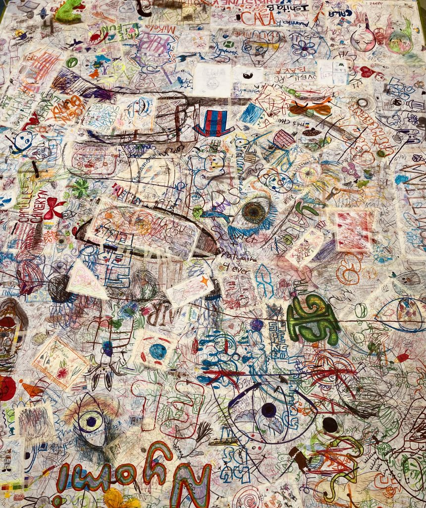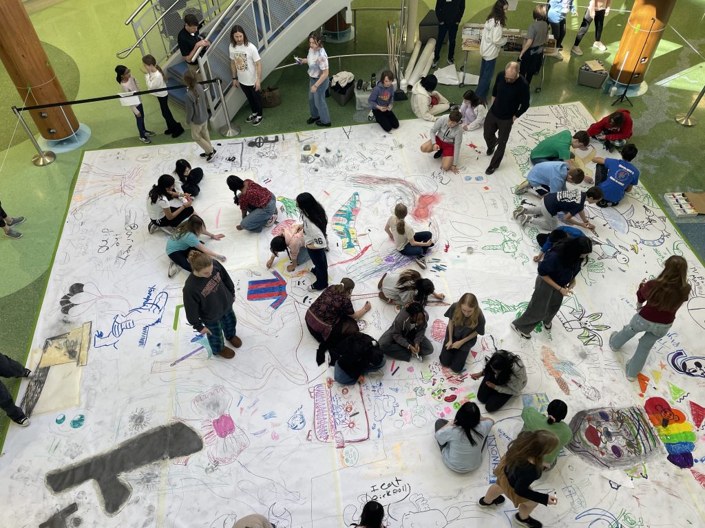 Students descended upon a 24 by 28-foot canvas and began drawing in the school’s atrium on Feb. 7.