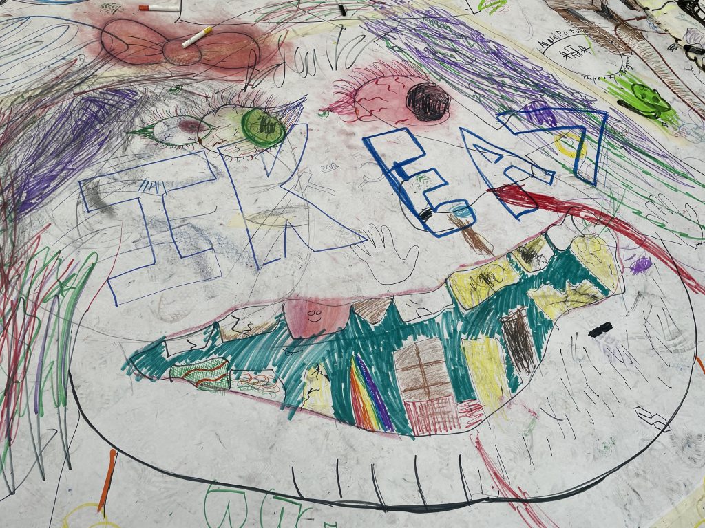 Some students pasted paper on top of other’s drawings and created something different. There were no rules, except for being school-appropriate.