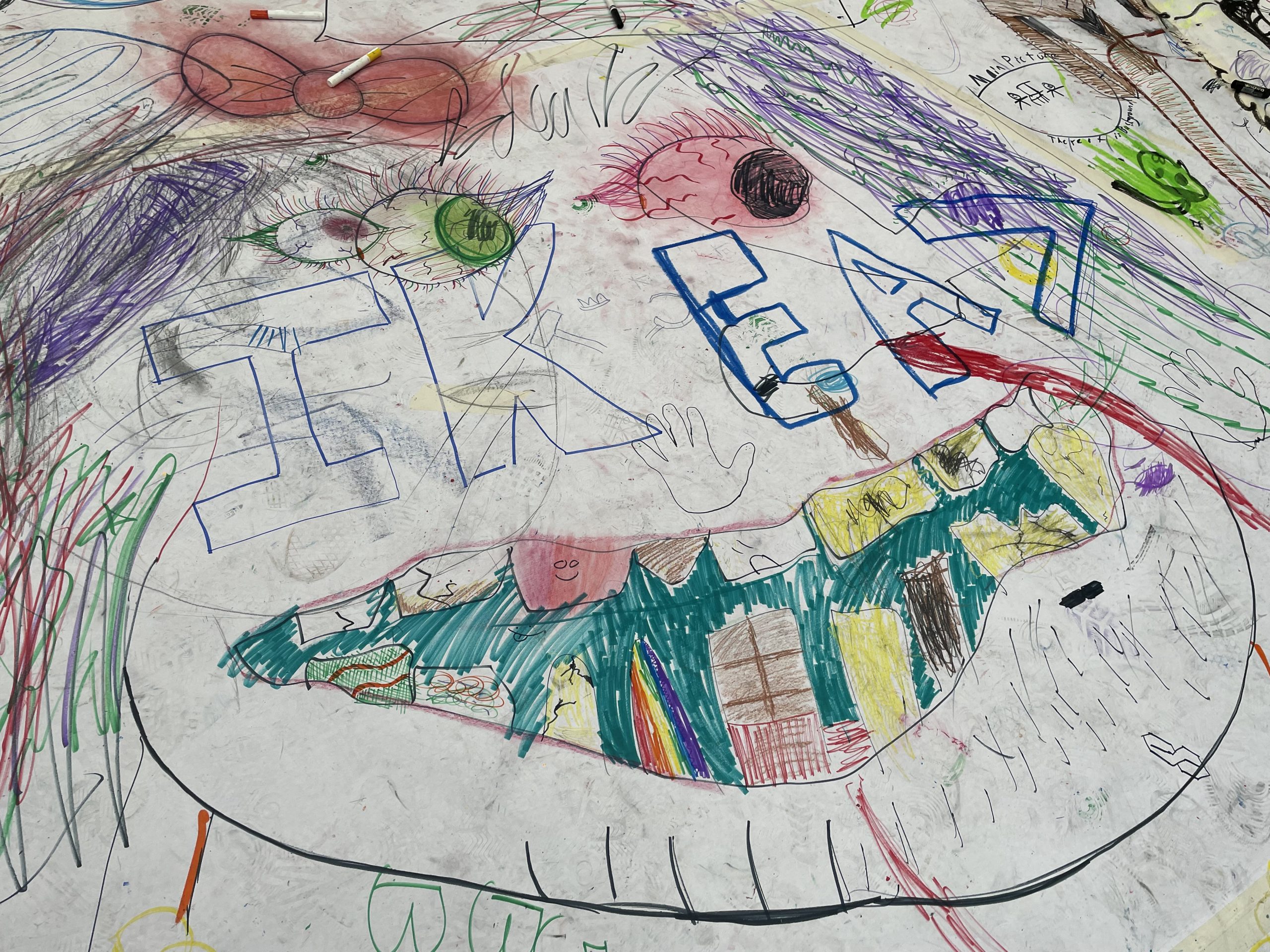 About every hour, sixth, seventh and eighth grade art classes took turns expressing themselves on the paper.