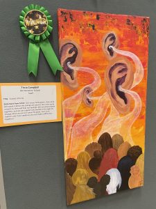 Alexander Drum belongs to the Togetherness through Inclusion, Diversity, and Equity (TIDE) coalition at Bayside High School. His artwork, titled “I Can’t Do This Alone,” depicted someone who wants to give up, but is encouraged by others to keep going.