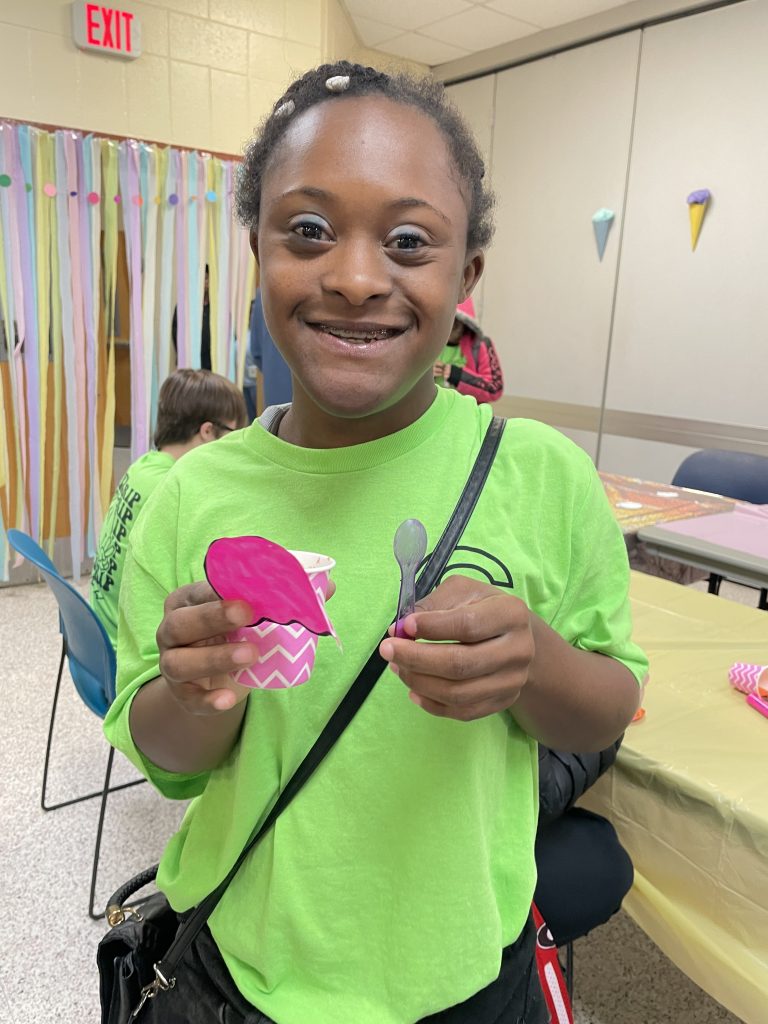 Cox High senior Dee Dee Fulton ate some chocolate ice cream and colored a piece of paper with a strawberry-scented marker. Her favorite part of the day? “Dancing!” she said.