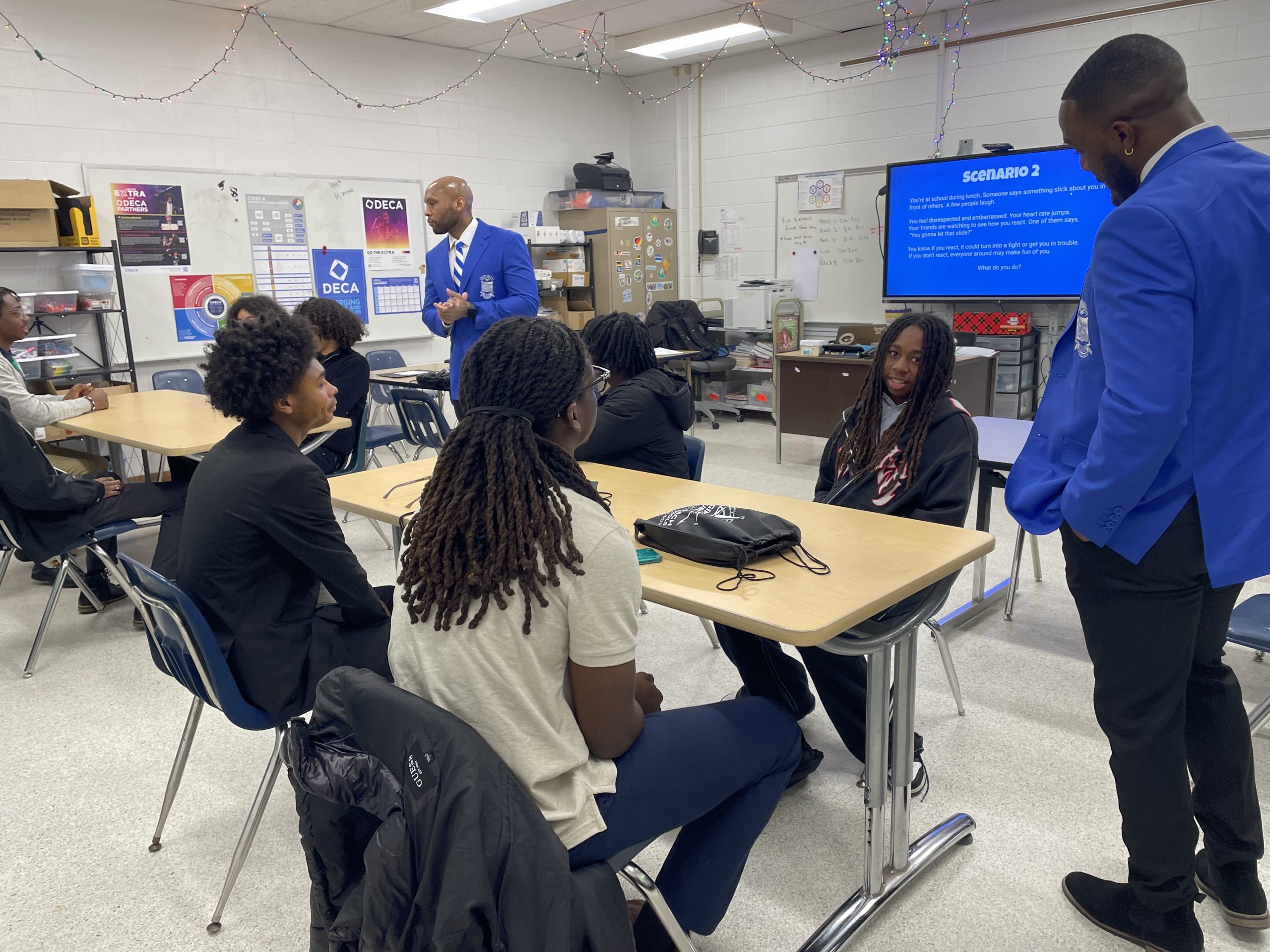 Phi Beta Sigma fraternity members, including assistant principals Marcus Turner from Cox High and Bryce Mitchell of Churchland High in Portsmouth, volunteered at the event.